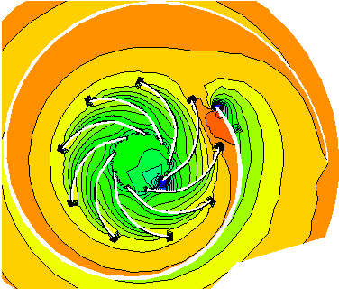 • 当泵的流量小于设计流量时,液体在进口撞击叶片正面,最低压力在叶片进口处靠近前盖板的叶片背面上,如图K2处。