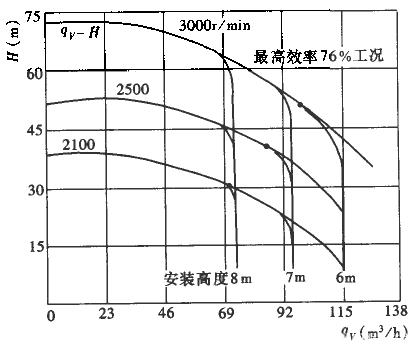 不同的吸高ZsZs3 >Zs3 > Zs3),吸高Zs越大,有效汽蚀余量Δha越小,断裂工况向小流量的方向移动,不发生汽蚀的流量范围越小。