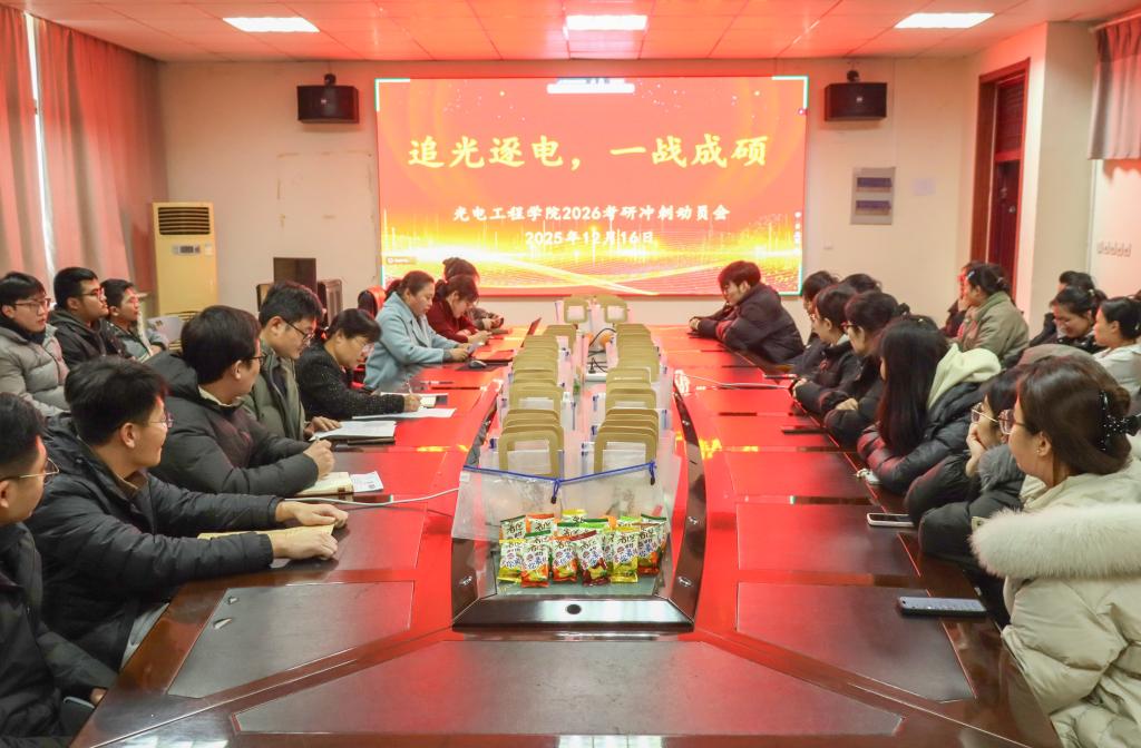 为进一步帮助光电学子缓解备考压力、坚定迎考信心,12月16日下午,kaiyun体育官网入口网页版在初教楼511会议室召开“追光逐电,一战成硕”--2026届考研冲刺动员会。会议采取“线上+线下”同步方式进行,学院党政领导、毕业班班主任、辅导员及2026届考研学生参加。会议由kaiyun体育官网入口网页版党委副书记申晨主持。